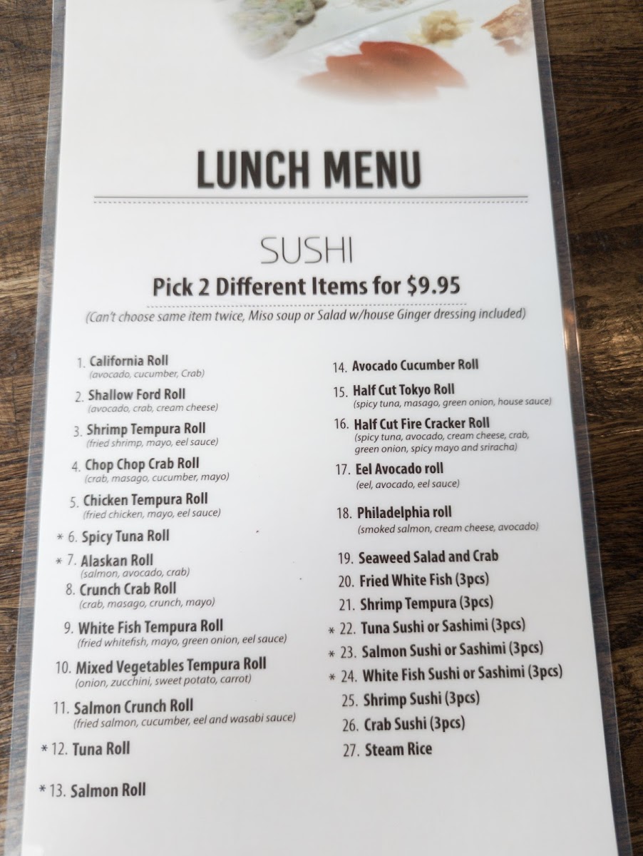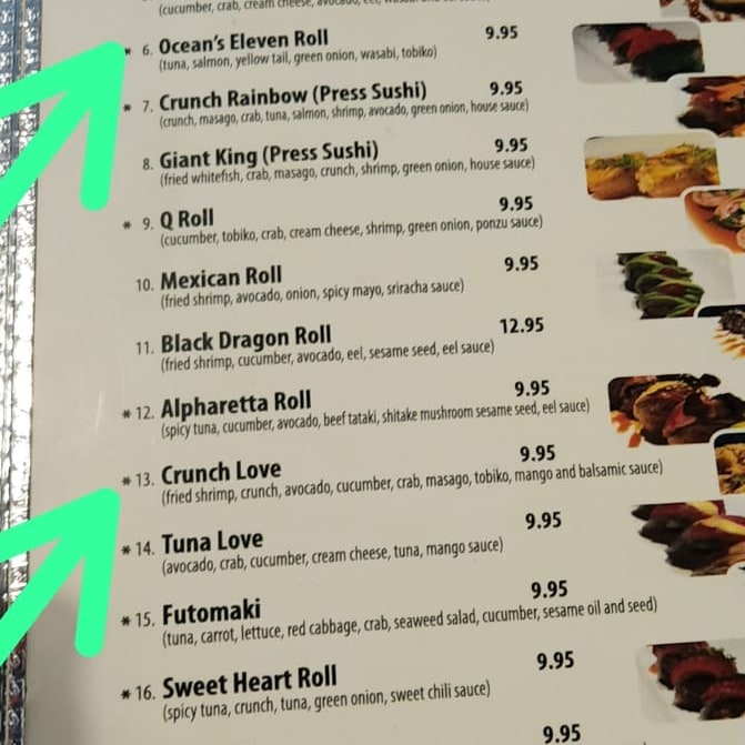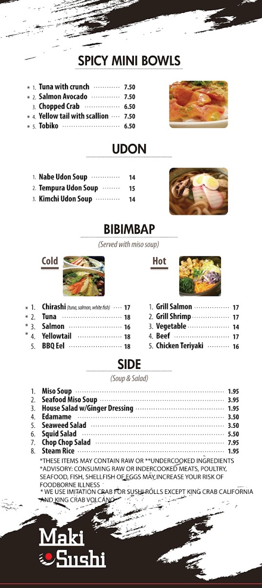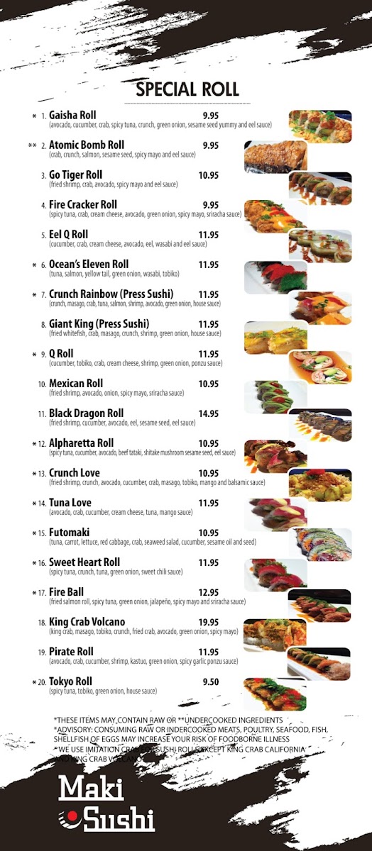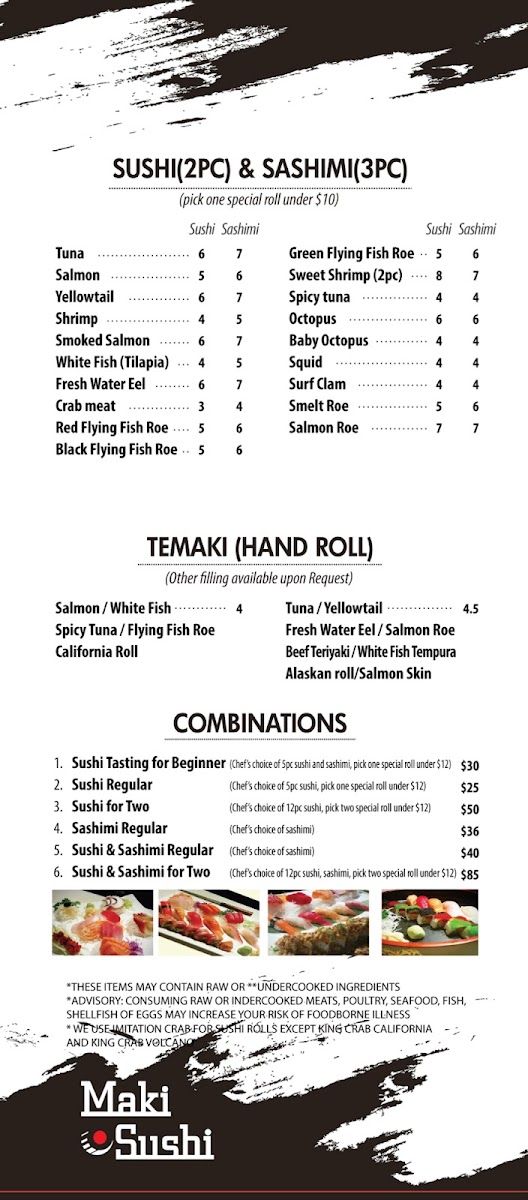 Maki sushi Menu